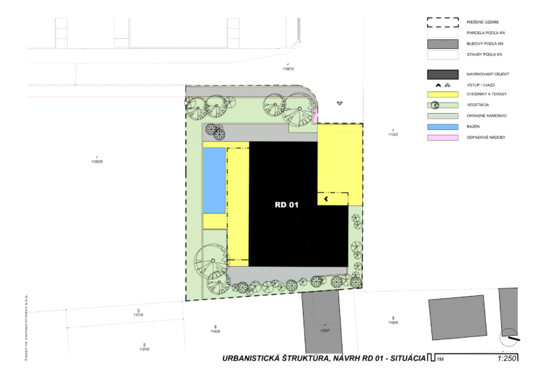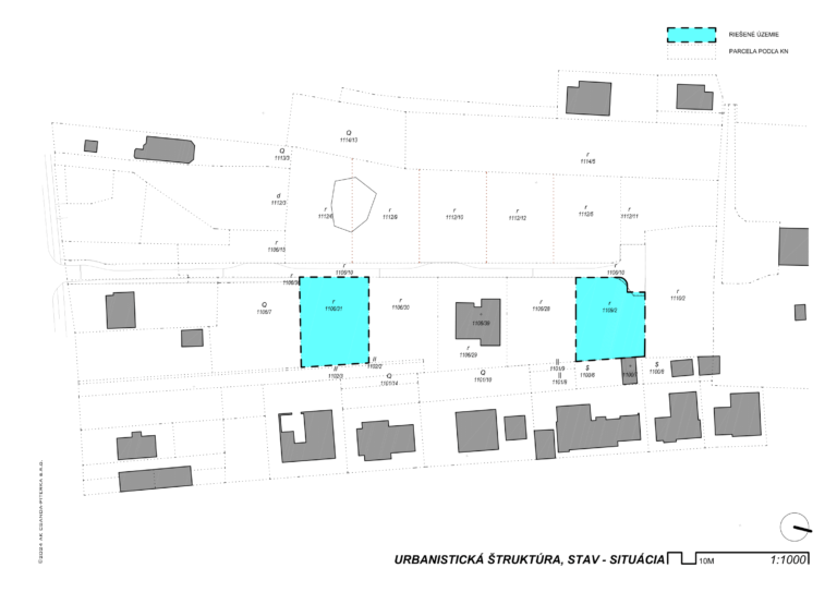 Urbanistickým riešením vzniká nová slepá ulica napojená na Jeleneckú ul. Ulica stúpa do svahu Zoborského masívu. Na západnej strane ulice je navrhovaná zástavba 5 samostatné stojacich rodinných domov. Každý dom je od predchádzajúceho osadený vyššie o 1,5 m, čo reflektuje stúpajúci terén. Domy sú dvojpodlažné s vlastnou obytnou záhradou rozdelenou na prednú a zadnú- súkromnú časť.